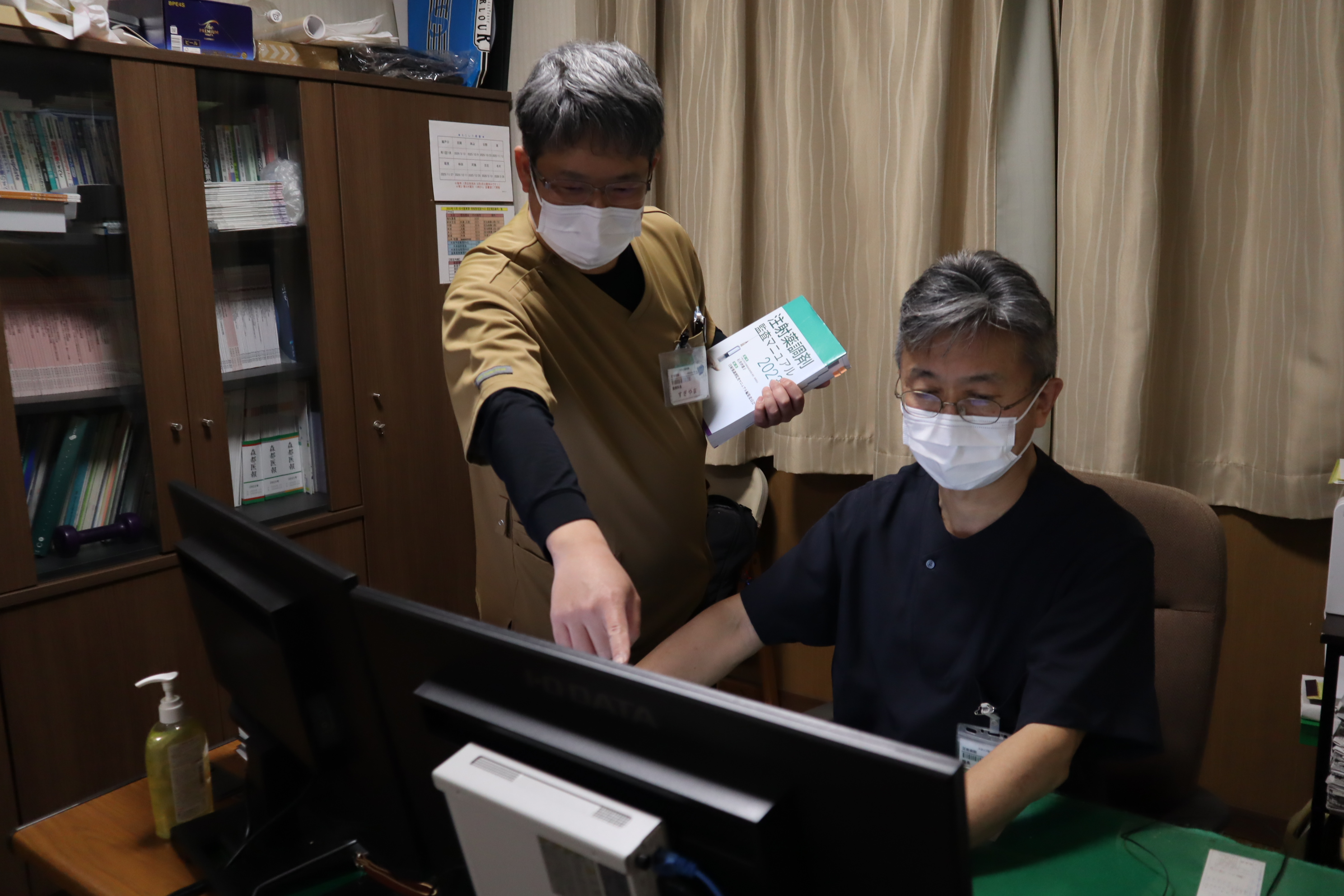院内感染制御チーム(ICT)院内において適切な感染防止対策が行われているかを確認するため、週に1回チームで環境ラウンドを行っています。また、抗菌薬の適正使用のためのガイドライン作成や抗菌薬使用量の調査・報告、薬物血中濃度モニタリング(TDM)、消毒薬の適正使用推進のための現場スタッフへの指導など、様々な業務を通じて薬剤師として感染制御に関わっています。 |
